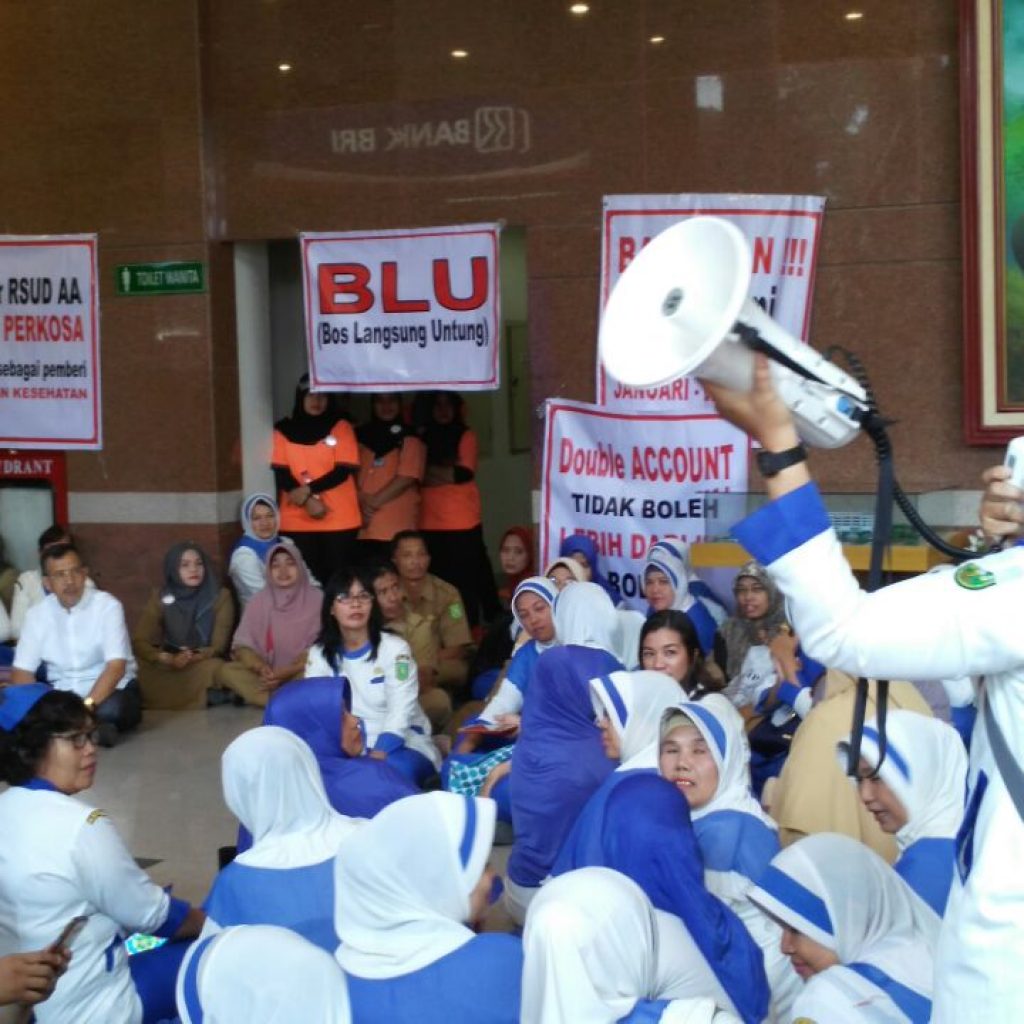PEKANBARU, SIAGANEWS.CO – Selain berorasi, pegawai Rumah Sakit Umum Daerah RSUD Arifin Achmad juga menyampaikan aspirasi melalui tulisan. Berbagai kalimat dituliskan sebagai bentuk ekspresi kekecewaan pegawai. Beberapa kalimat yang dituliskan, para pejabat yang terhormat hentikan perselingkuhan, Direktur RSUD AA jangan perkosa hak kami sebagai pemberi pelayanan kesehatan, koruptor rata-rata berkerah, kami bukan orang bodoh yang bisa dibohongi, Asrizal biang kerok dimana hati nuranimu, jangan gadaikan hati nuranimu karena jabatan dan uang, selamat datang Gubenur mana janjimu, datanglah KPK. Namun dari beberapa tulisan tersebut ada kalimat sindiran, BLU (Bos Langsung Untung).