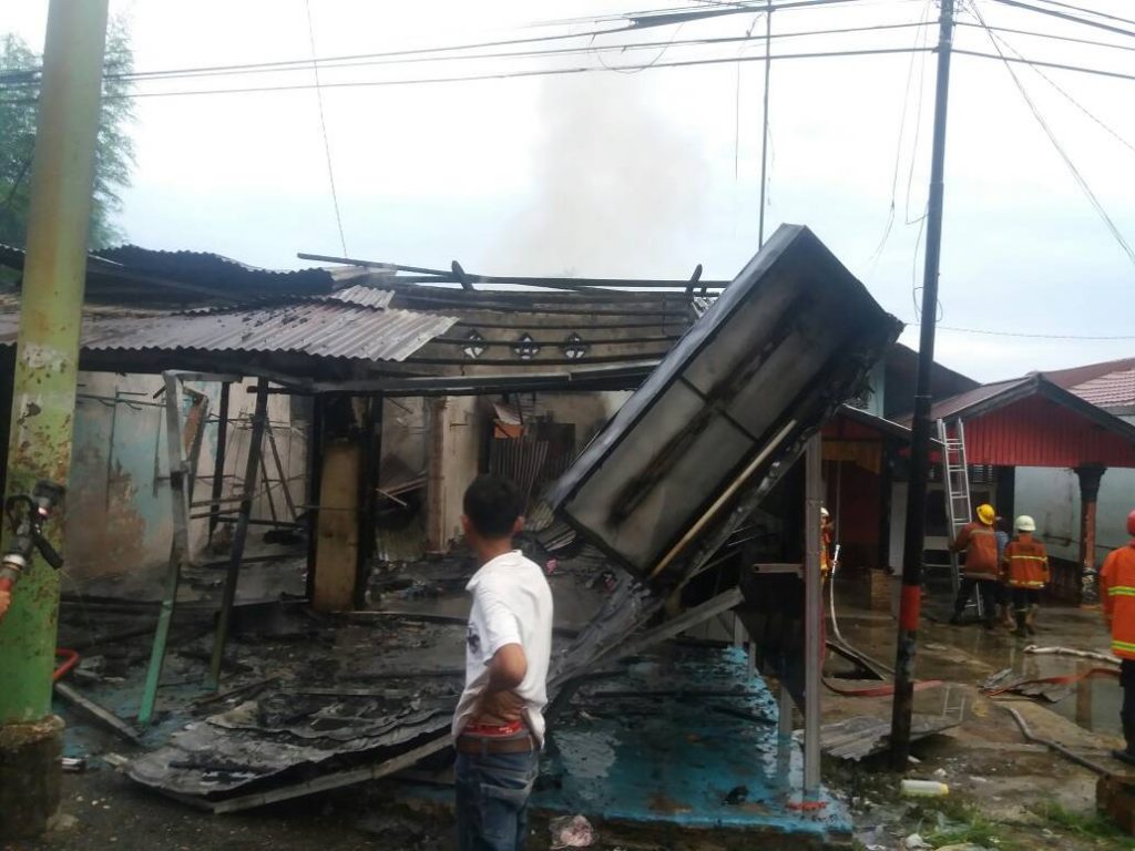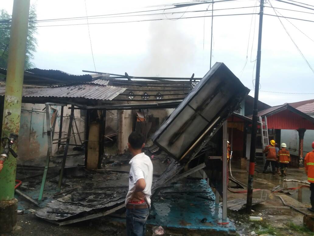 Satu unit toko pakaian ludes terbakar dari peristiwa tersebut. Polisi masih melakukan penyelidikan terkait kasus itu.