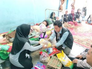 Bantuan tersebut berupa Beras, telor dan minyak goreng diberikan kepada Sarif Hidayatul Akmal (18), warga Jalan Empat Suku, Gang Selamat, RT 005 RW 007, Kampung Tualang. Sarif menderita lumpuh dan hanya bisa terbaring di tempat tidur karena kondisi tubuhnya yang lemah.