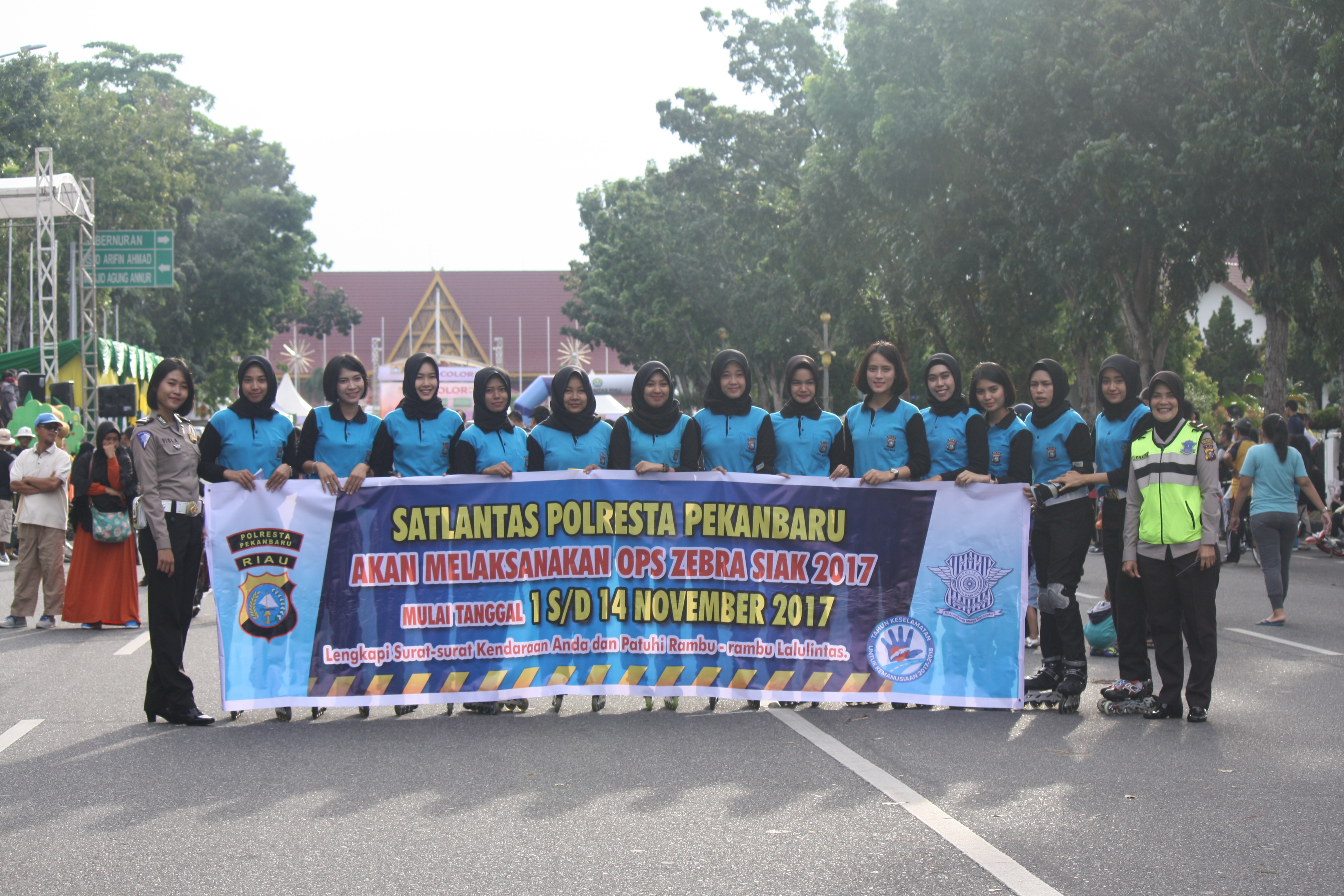 Tidak hanya polwan berpakaian dinas, Polresta Pekanbaru juga mengerahkan pasukan polwan bersepatu roda untuk menyampaikan informasi dan himbauan tentang rencana pelaksanaan operasi zebra siak 2017 di kota Pekanbaru.