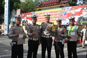 Sedangkan Brigadir Robby diberikan penghargaan atas prestasinya mengungkap kepemilikan narkoba jenis ganja dalam jok sepeda motor saat menyetop pelanggar lalu lintas di jalan Riau beberapa waktu lalu.