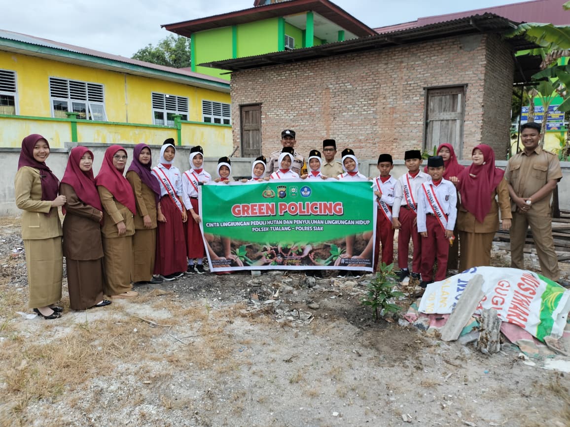 Perawang – siaganews.id,– Suasana pagi di SDS Muhammadiyah Tualang, Jalan Raya Km 6, Kelurahan Perawang, Kecamatan Tualang, Kabupaten Siak, Selasa (9/12/2025) berbeda dari biasanya. Ratusan siswa tampak antusias mengikuti kegiatan Green Policing yang digelar Polsek Tualang, sebuah program edukasi lingkungan hidup sejak usia dini.
