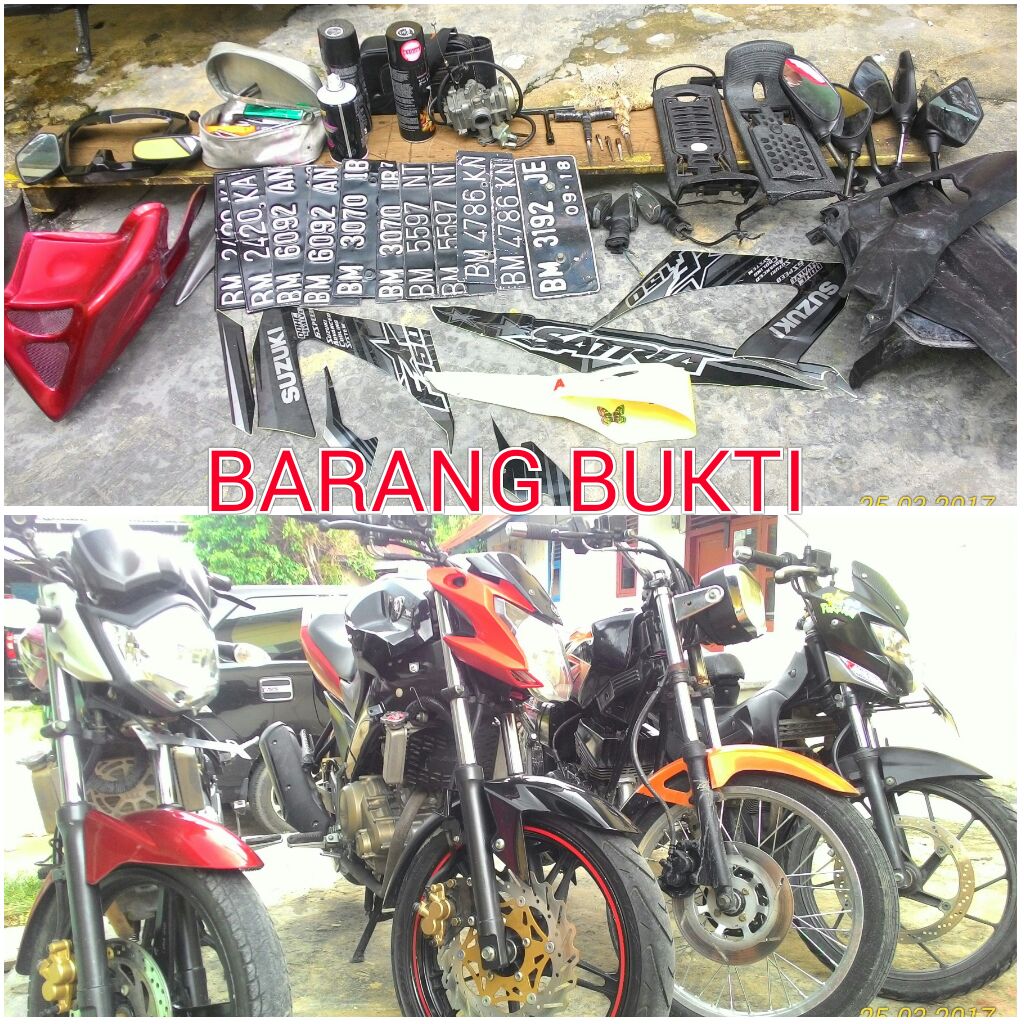 Dari pengungkapan tersebut polisi mendapati empat unit sepeda motor serta enam pasang plat nomor, tiga buah kunci letter T, tiga kaleng cat pileox dan empat pasang kaca spion.