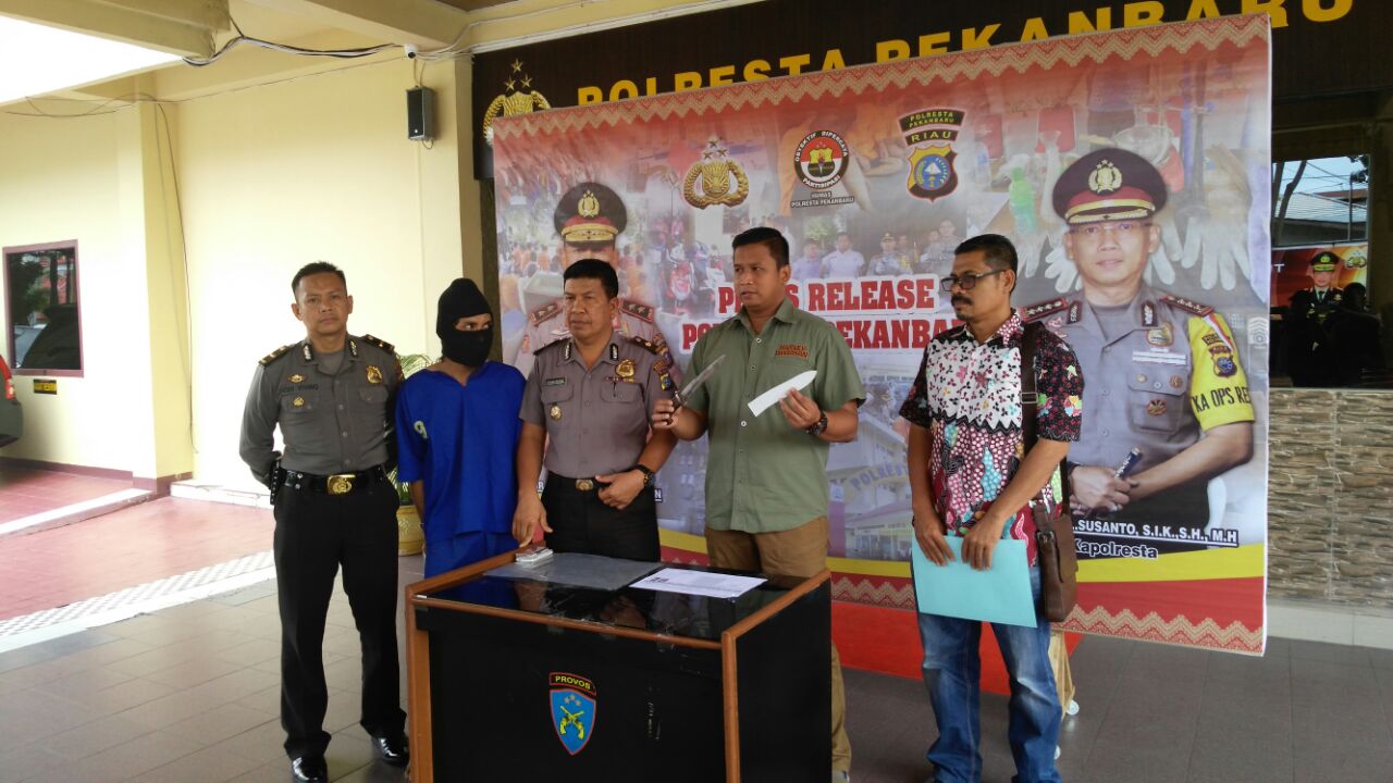 Demikian dibeberkan Kasatreskrim Polresta Pekanbaru, Kompol Bimo Arianto disela-sela ekspose tersangka dan barang bukti, Jum’at (24/3/2017) siang.