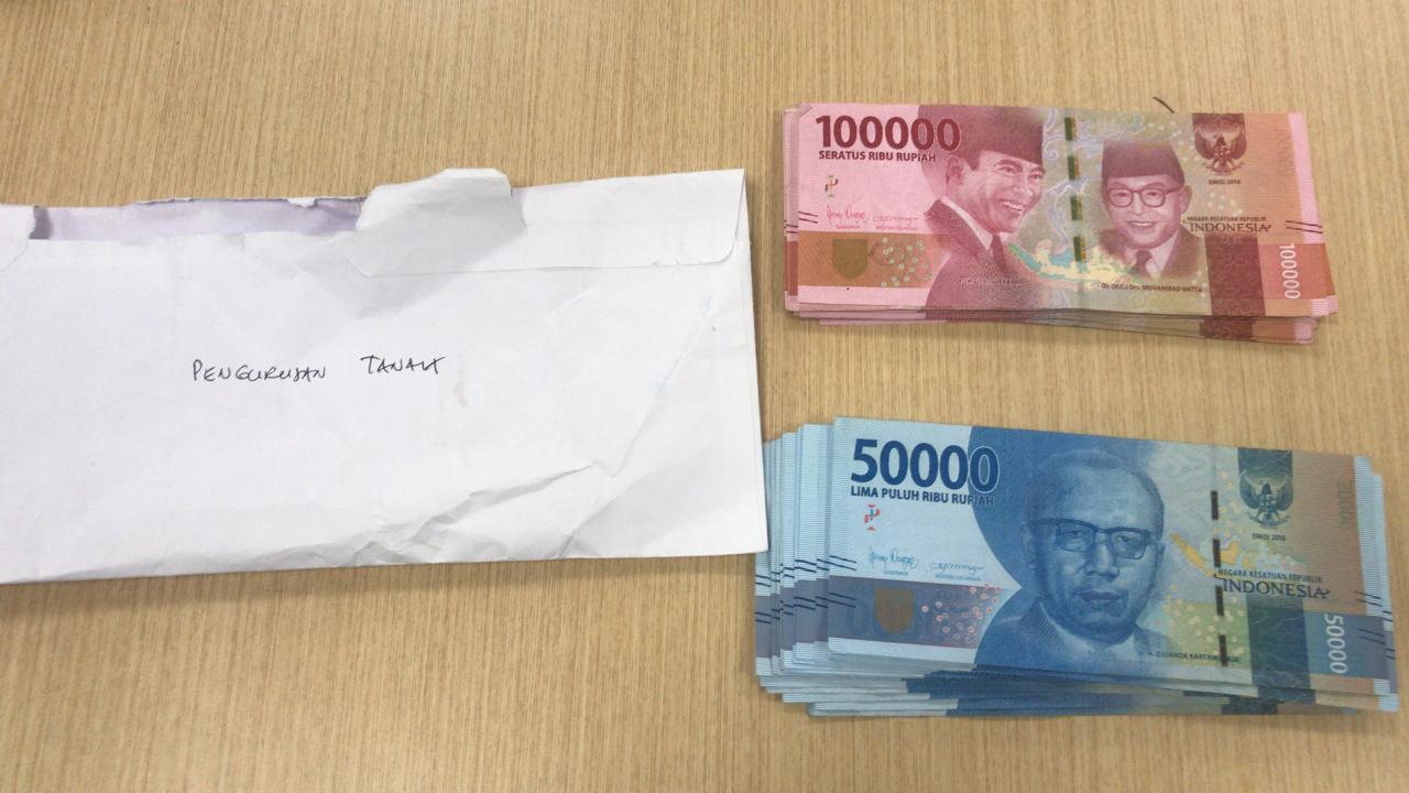 “Tim mengamankan barang bukti berupa uang tunai sejumlah tiga juta rupiah didalam amplop warna putih yang bertuliskan “pengurusan tanah” Surat Keterangan Ganti Rugi”, terang Syamsul.