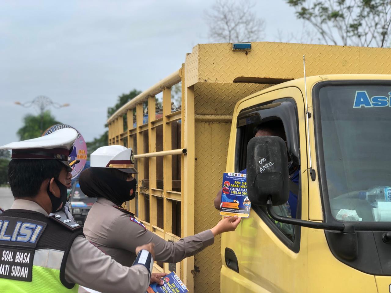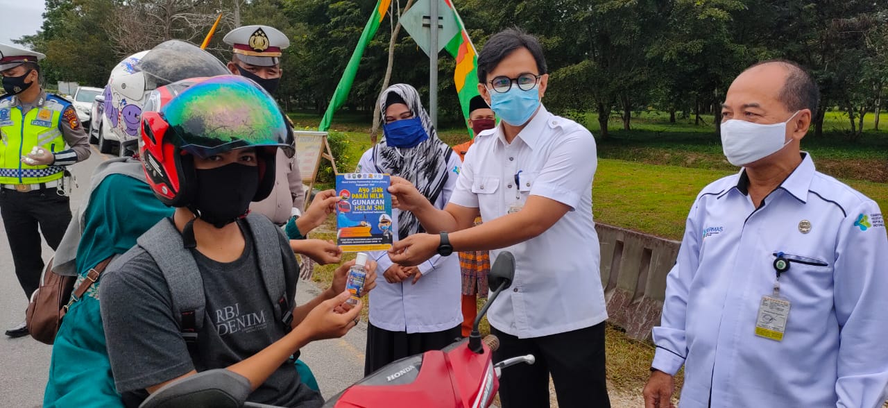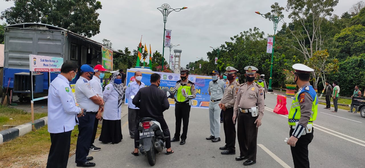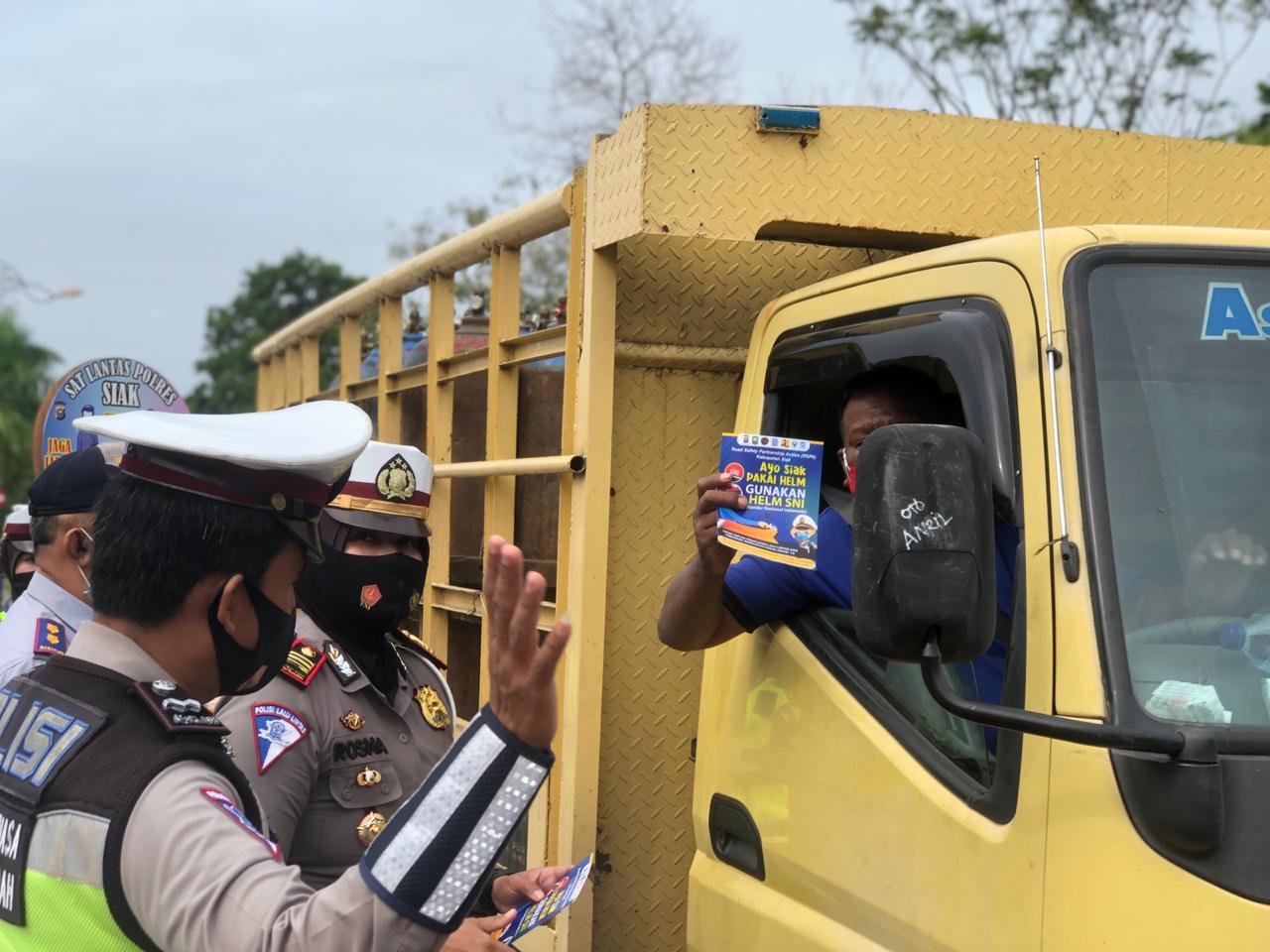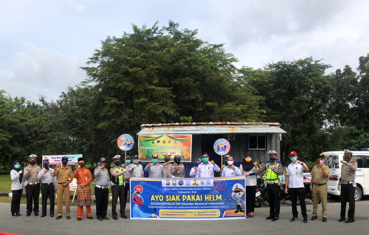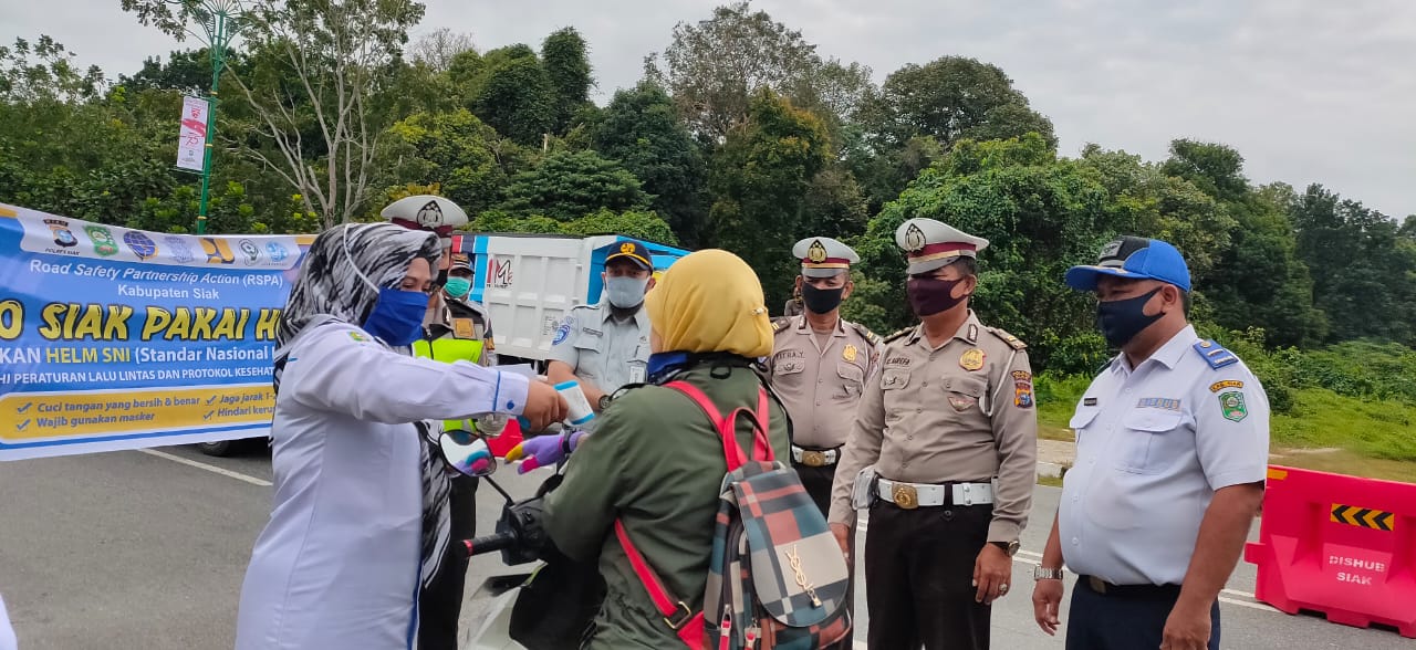 ” Hari Ini kita bersama 5 pilar terkait menggelar Giat Road Safety Partnership Action ( RSPA ), adapun giat yang kita laksanakan pada hari ini antara lain Pembagian Leaflet Himbauan Wajib Helm SNI dan masker cegah Covid-19 kepada pengendara yang melintas di Jembatan Tengku Agung Sultanah Latifah, memberikan Handsanitizer kepada pengendara Roda 2 dan Roda 4 yang telah tertib berlalu lintas dan mematuhi protokol kesehatan , Memberikan Himbauan Dengan menggunakan papan Gimmick himbauan Kamseltibcarlantas sebagai alat praga dan Melakukan peneguran serta penindakan kepada pelanggar Lalu lintas” terang Kapolres Siak melalui Kasat Lantas Polres Siak AKP Rosna Meilani, SIK.