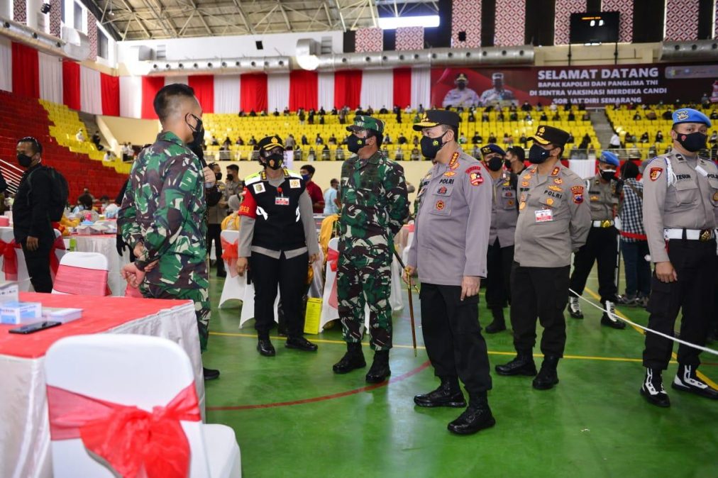 JAKARTA – siaganews.id – Panglima TNI Marsekal Hadi Tjahjanto bersama Kapolri Jenderal Listyo Sigit Prabowo meninjau pelaksanaan Vaksinasi Merdeka Candi di Semarang, Jawa Tengah, Kamis, (5/8/2021). Kegiatan ini salah satu upaya akselerasi vaksinasi sebagai hadiah di hari Kemerdekaan Republik Indonesia (RI) ke-76.