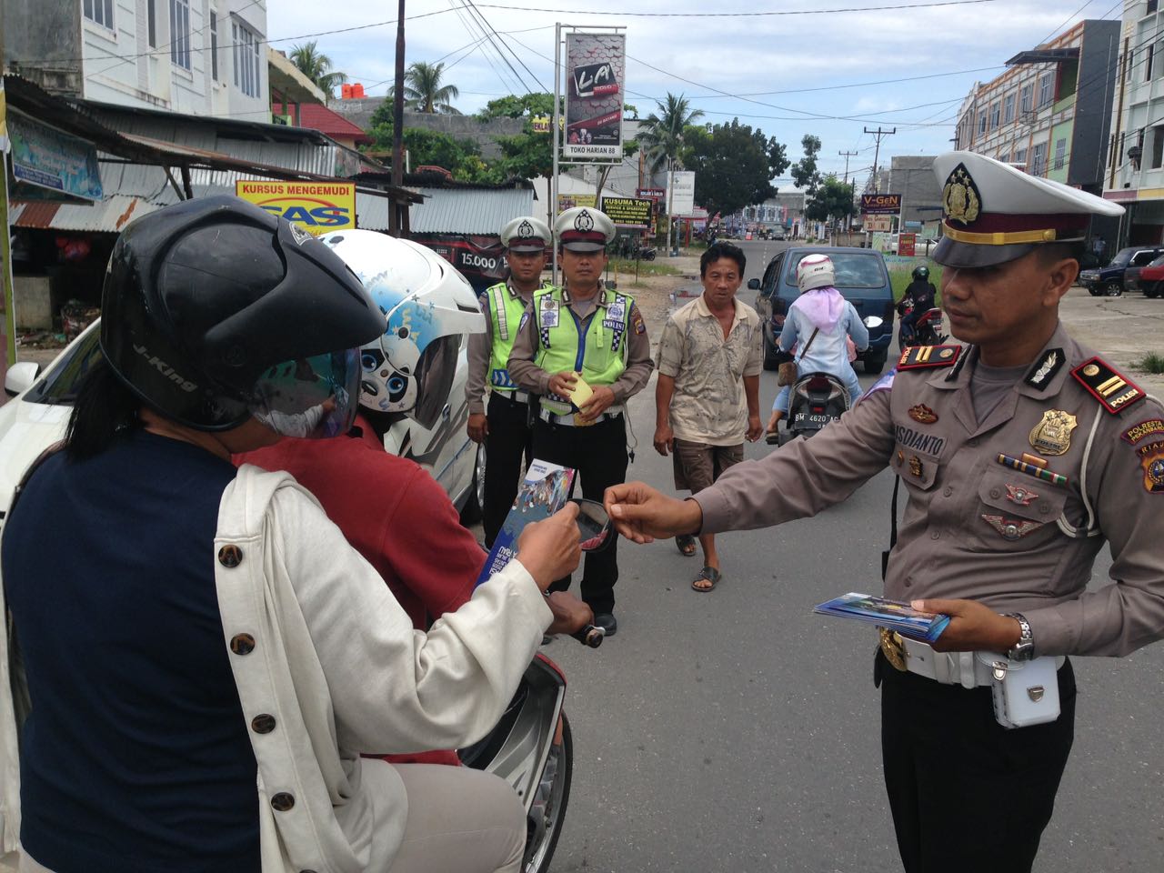 Tidak hanya dengan membagikan brosur himbauan tertib berlalu lintas, menurutnya pihaknya juga menyiapkan PIN Pelopor Keselamatan berlalu lintas yang telah disiapkan sebelumnya.