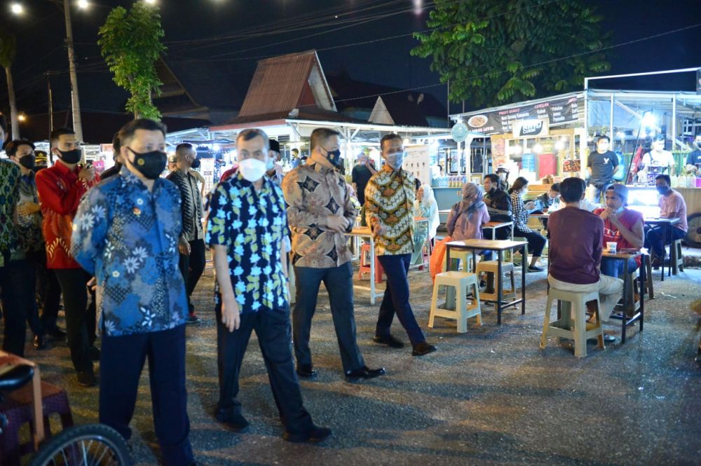 PEKANBARU, SIAGANEWS.ID – Tim Satuan Tugas (Satgas) COVID-19 Riau dipimpin langsung oleh Gubernur Riau, H Syamsuar, melakukan sosialisasi penerapan protokol kesehatan (prokes) COVID-19 di pusat kuliner Bundaran Tugu Keris, Jalan Diponegoro, Pekanbaru, Riau.